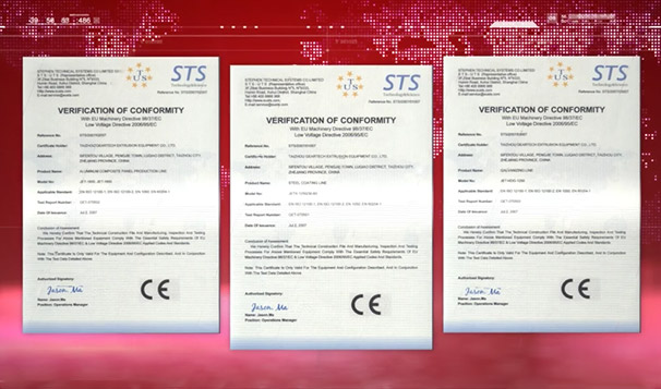 公司鋁塑板生產線、彩鋼涂裝生產線、熱鍍鋅生產線等獲得歐盟CE認證